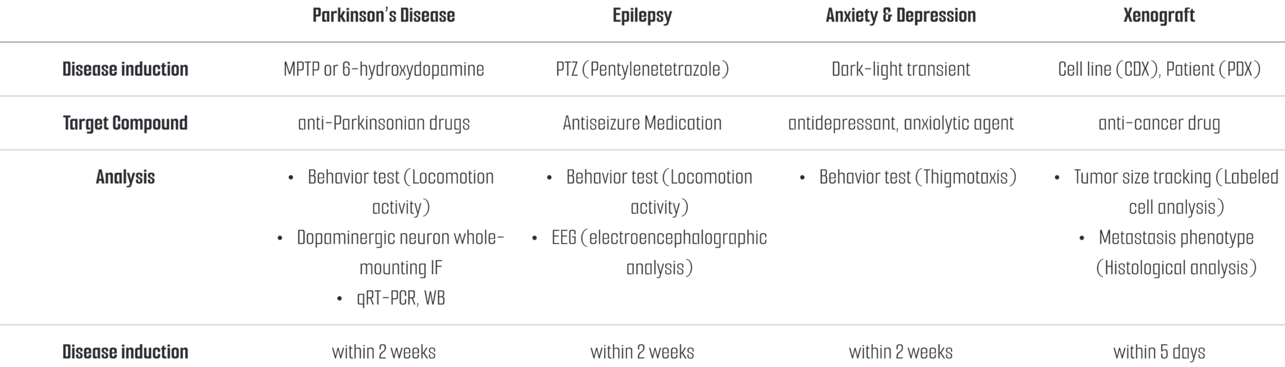 Customized zebrafish models support neurology, oncology, cardiovascular, and other research areas with translatable outcomes.